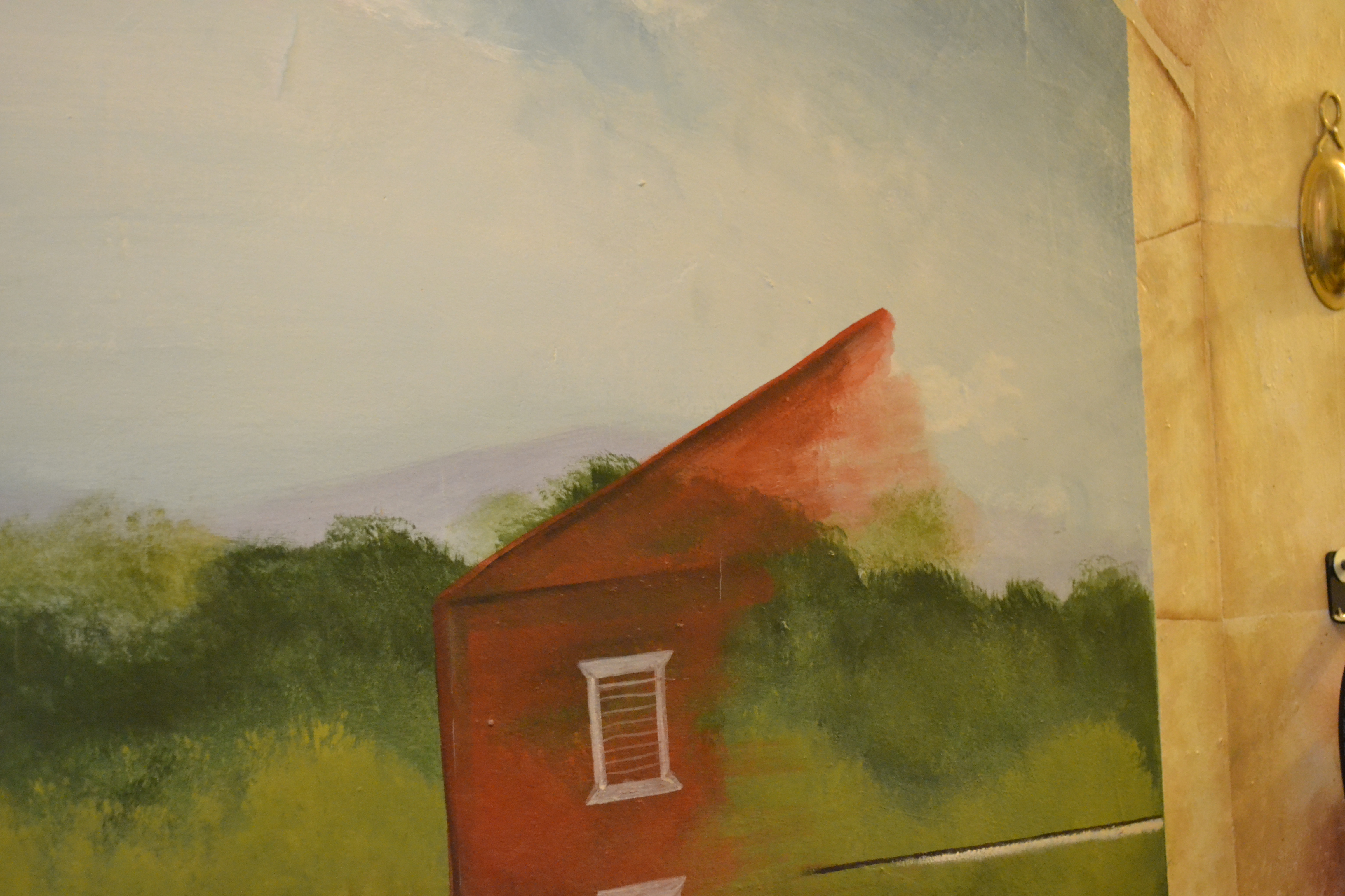 This painting contains an image of the old red barn that once stood on the property. I love how it’s depicted in a ghost-like way.