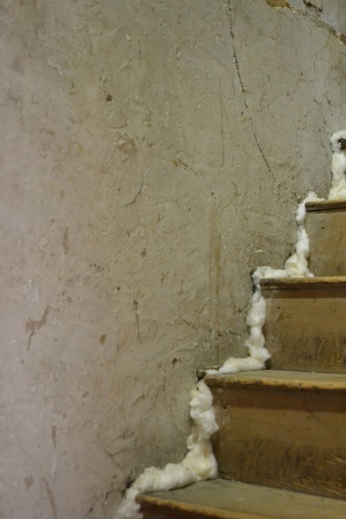 The plastered stairwell to the attic