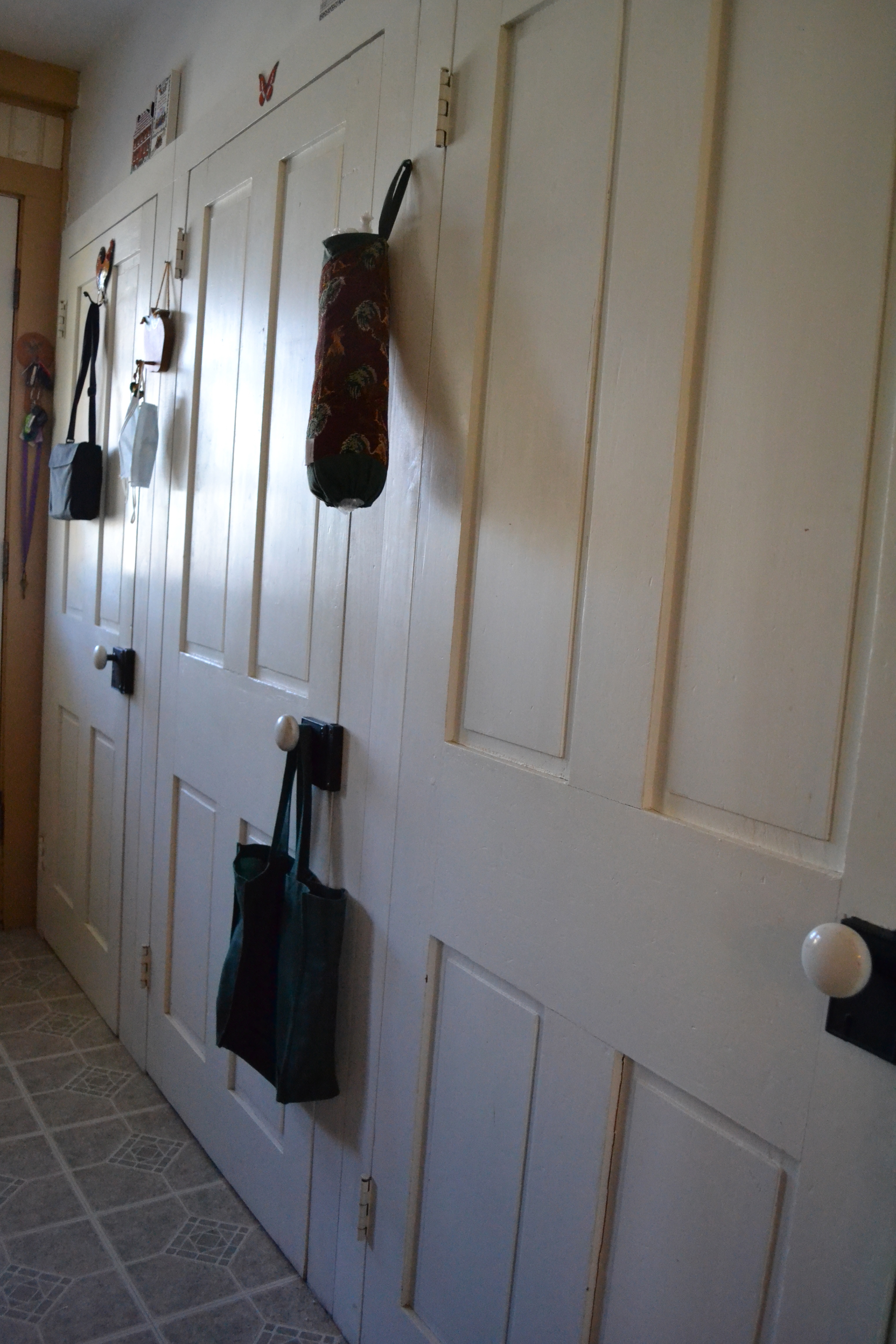 The triple (yes that’s three doors!) closets in the mud room. Just imagine 3 separate closets and what you’d do with them…