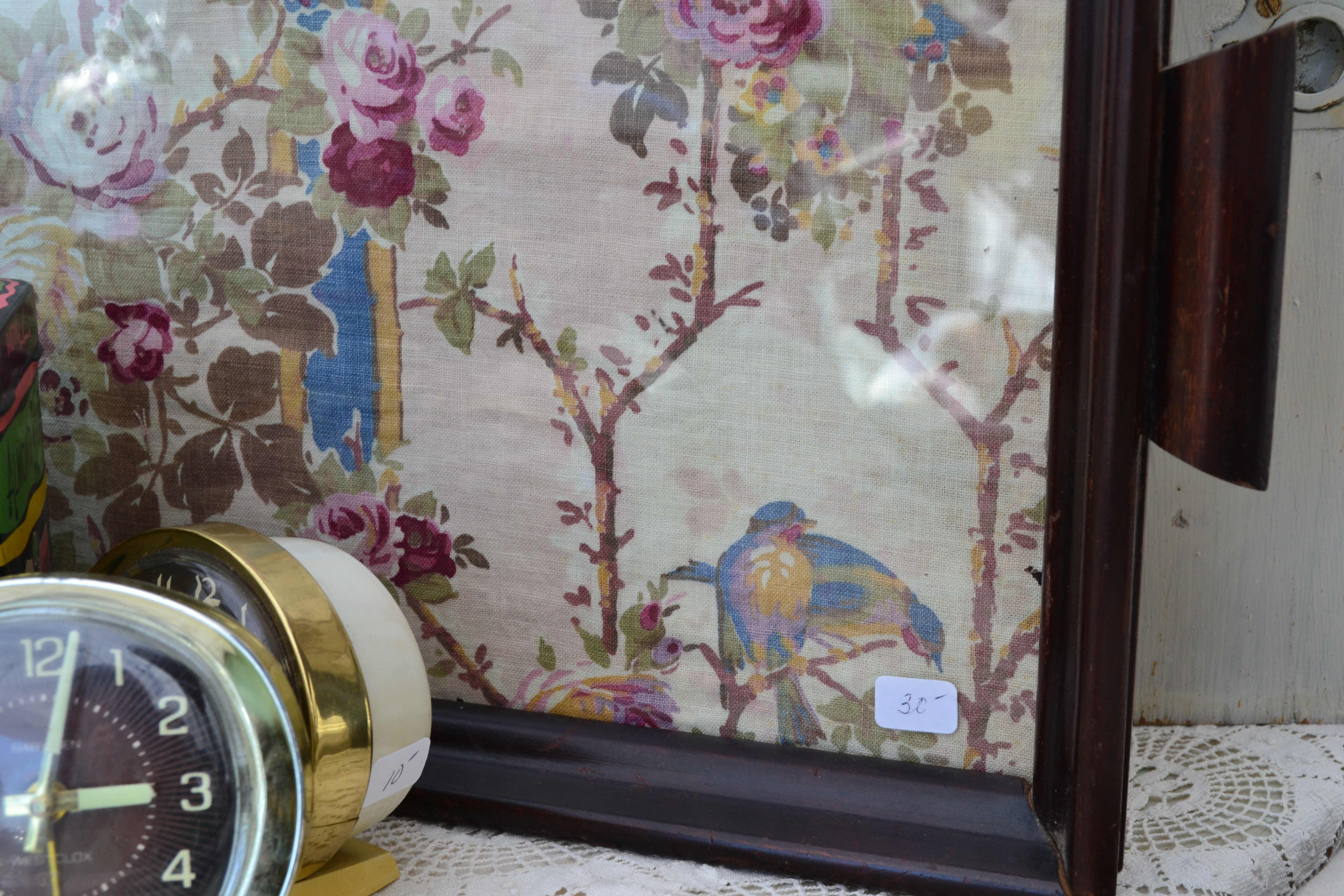 After removing the rest of the contact paper covering the wanescoating, and more of the vinyl ‘parquet’ floor: